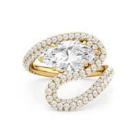 Where softness meets structure: an elegant diamond rests within a wavy embrace, secure and poised like a sail caught in a gentle breeze.