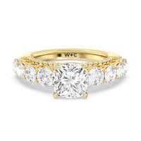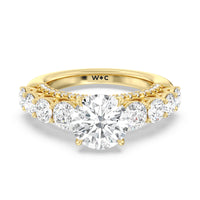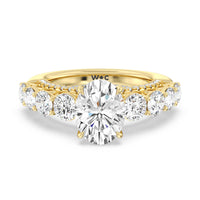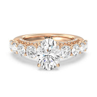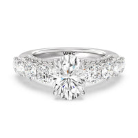 A ring she'll never want to take off. This shimmering symbol of love undoubtedly looks romantic with its hidden peek-a-boo diamond accents. Highlighting the brilliance of the lab-grown diamond central stone are graduating round diamonds along the band's shoulders.