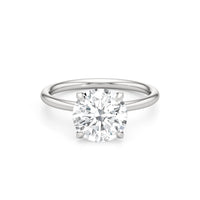 The W Classic Engagement Ring showcases the signature W-shaped basket and hidden emblem, blending elegant, architectural design with symbolic detail in a comfort fit shank. The center stone is cradled in light, secured by knife-edged prongs in a timeless solitaire setting. It is finished with an artfully engraved with a unique serial number.
