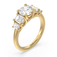 Pledge your love with a ring that delivers tons of eye-catching sparkle. This five-diamond engagement ring features interconnected prongs forming a trellis to securely hold the centerpiece. The trellis also creates windows for light to pass through and hit the stone, and give you that incredible shine.