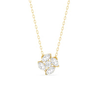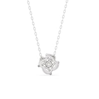 Crafted to excite wonder and admiration, this necklace displays a design inspired by a showy flower that draws its shape from the very earth in which it thrives. The diamonds on this piece are meticulously arranged in a cluster, following a hydrangea flower's full and voluminous appearance. Prepare to be captivated by the substantial fire and sparkle of this fanciful necklace.