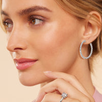 These hoops are ready to complement the elegance of a cocktail or dressy outfit. The hinged hoops come fully lined with diamonds that deliver a noticeably beautiful sparkle. Easy to wear and pair with most formal outfits, these versatile earrings are sure to highlight your refined sense of style while keeping your look elegant and timeless.