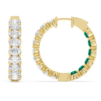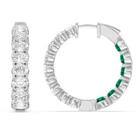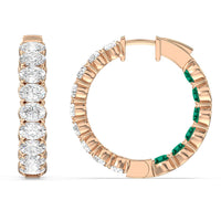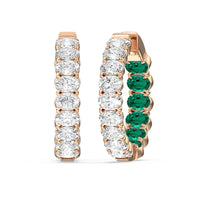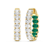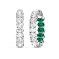 These hoops have what it takes to be your next statement earrings. They come with an inside-out style where their front-facing inner and outer edges are detailed with oval diamond & Created emerald. Beaming with dazzling brilliance and feminine allure, these gorgeous hoops can effortlessly elevate your monochrome formal outfit.