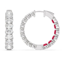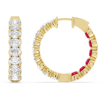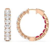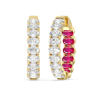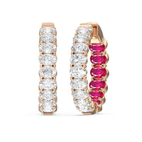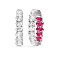 These hoops have what it takes to be your next statement earrings. They come with an inside-out style where their front-facing inner and outer edges are detailed with oval diamond & Created ruby. Beaming with dazzling brilliance and feminine allure, these gorgeous hoops can effortlessly elevate your monochrome formal outfit.