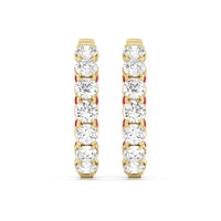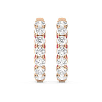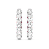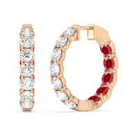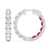 Dress up for a big night with these elegant earrings framing your face. These hoops feature a row of symmetrical round diamonds and created rubys on their inner and outer front-facing edges. Each hoop has twelve sparkling stones ready to add a dazzling detail to your look.