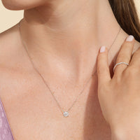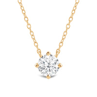 The finely crafted four prong wire basket pendant features a kite orientation to add a modern twist to the classic solitaire necklace. This a a perfect piece of sparkle in your daily ensemble - from a day in the office to a catch up with your besties.