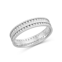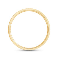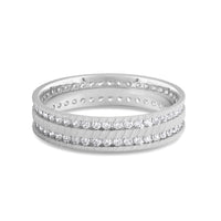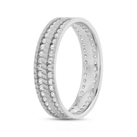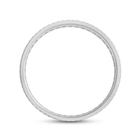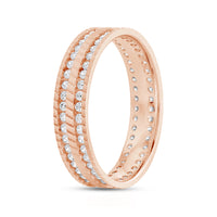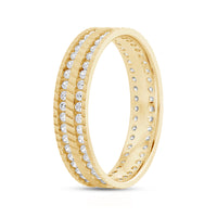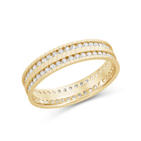 This striking wide band is finished with a precise wave pattern and detailed with two circles of diamonds. Opt for this ring if you want to add something a bit unexpected to an otherwise classic look.