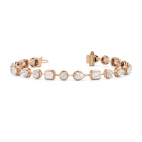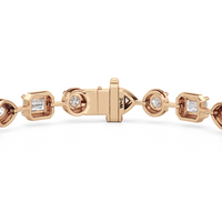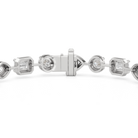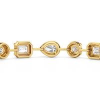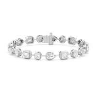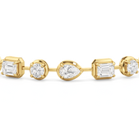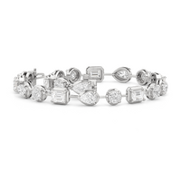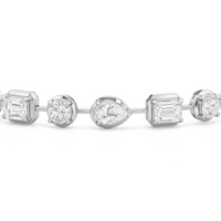 A bold choice for special occasions, this geometric pattern of emerald-cut, pear-cut, and round diamonds has given the classic tennis bracelet a decidedly modern appeal. Each diamond is meticulously mounted on a sleek pronged bezel that enhances the size of each stone and provides an extra secure setting.