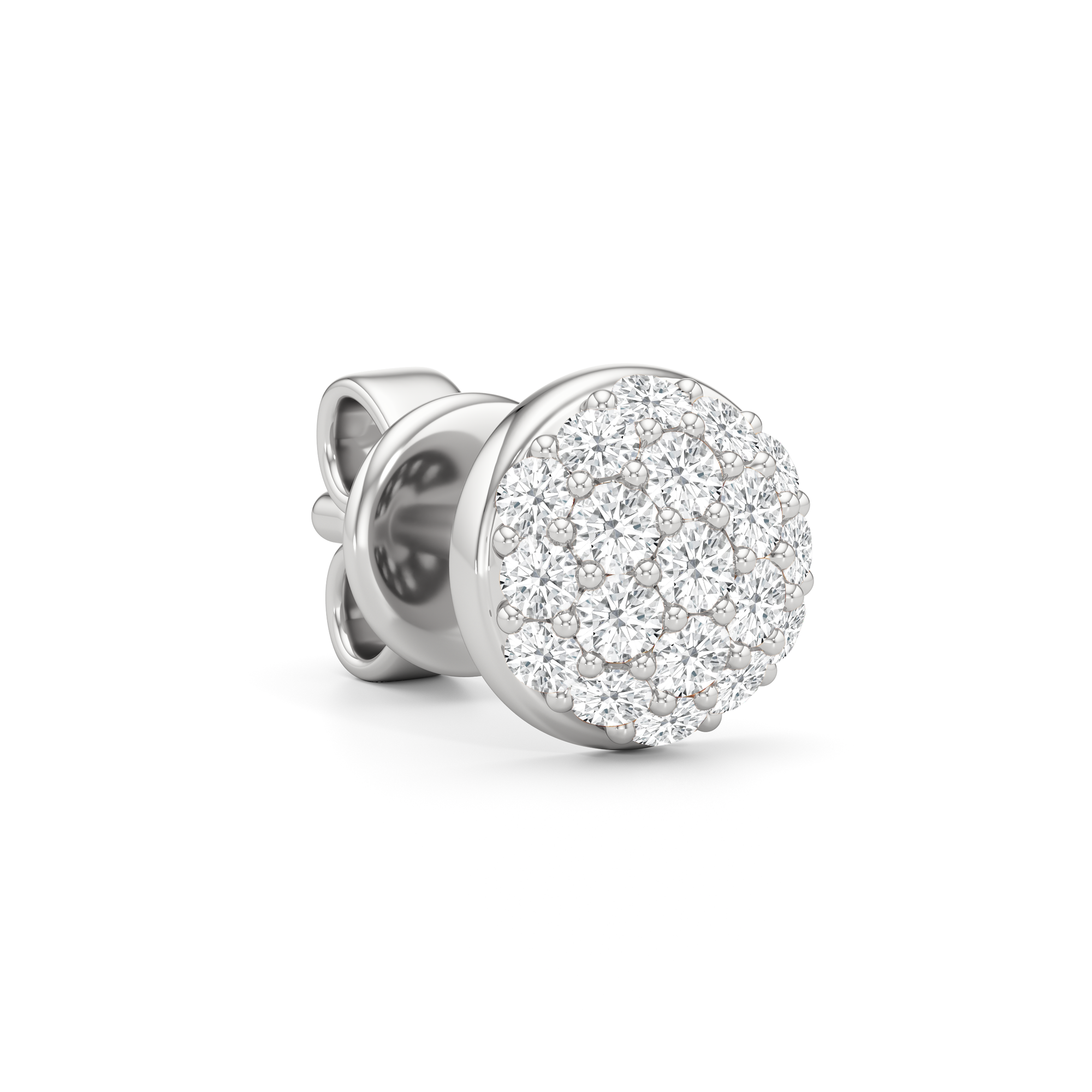 Small but full of light, Lumen stays easy on your ears, no matter how long your day runs. They feature a round base with a clustered arrangement of petite round diamonds, always ready to bring a gentle brilliance to your everyday.
