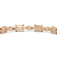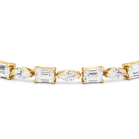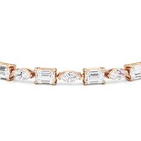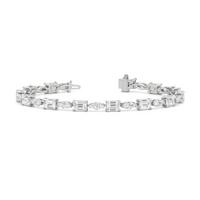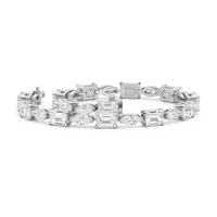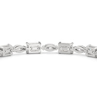 This diamond bracelet combines the flawless fusion of edgy elegance and timeless sophistication Designed with emerald-cut diamonds and marquise diamonds and arranged alternately into a single line and all in an east-west setting, this tennis bracelet offers versatility that suits any occasion.
