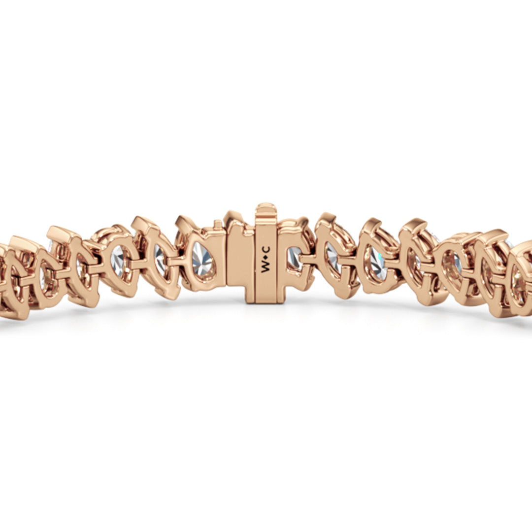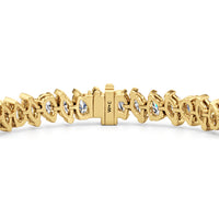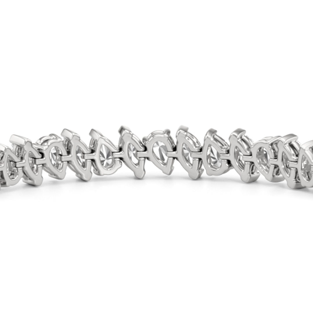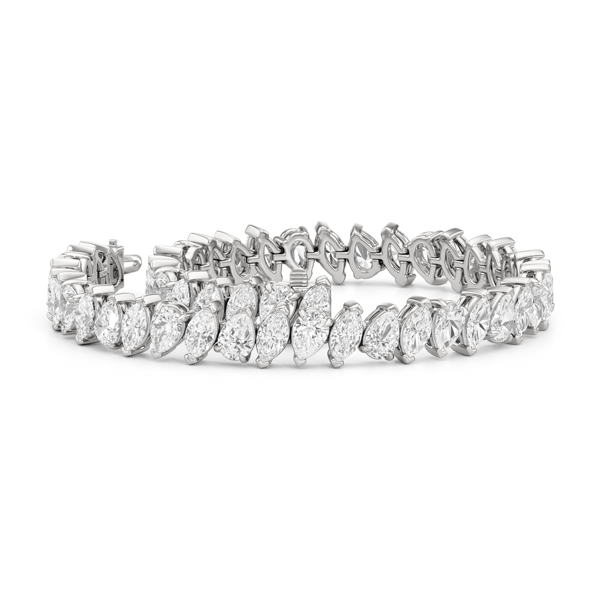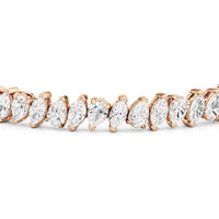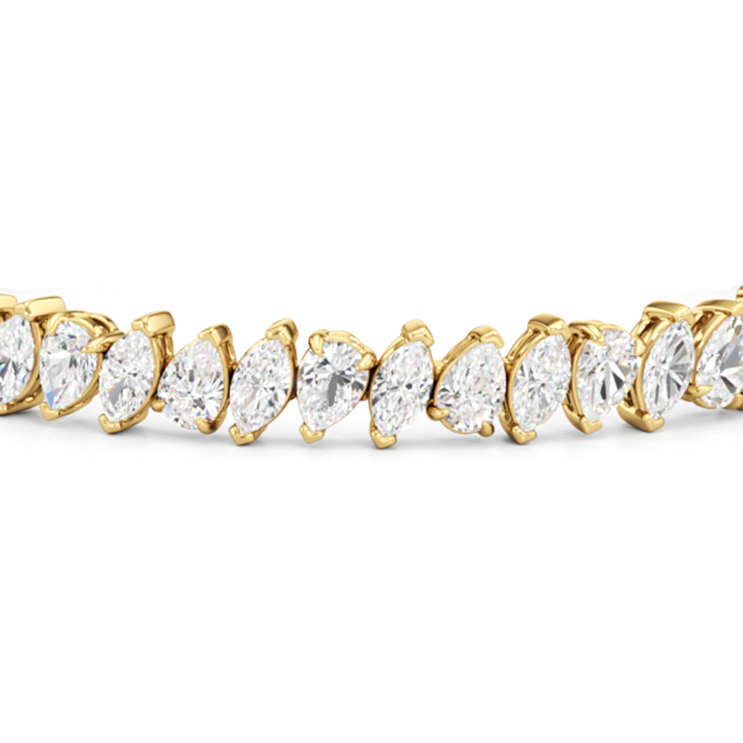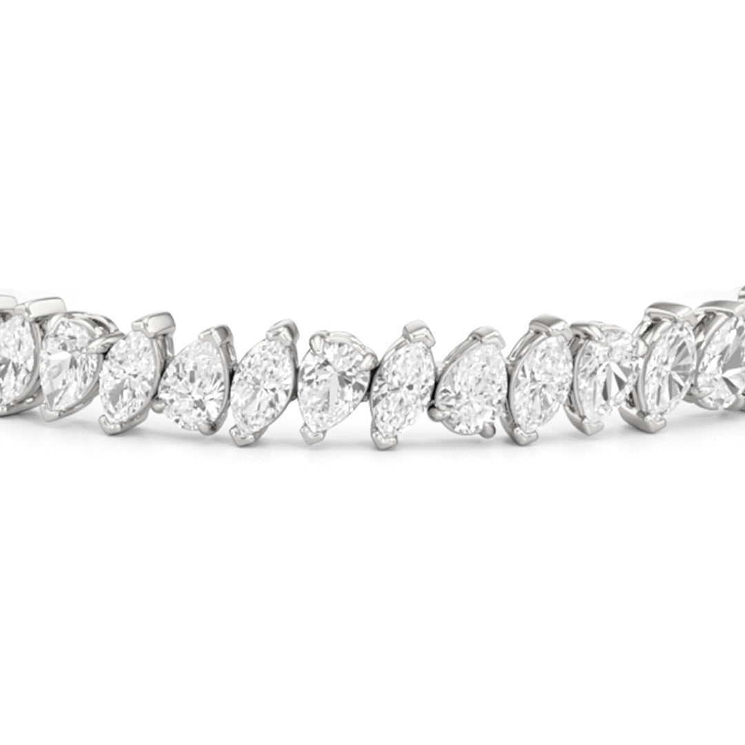 This diamond bracelet features pear and marquise diamonds that demand attention and admiration. The diamonds are arranged in an alternating pattern and set diagonally for an air of playfulness. Defying tradition, this sparkler is bound to bring a gorgeous visual interest to any outfit.