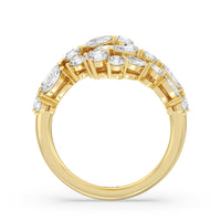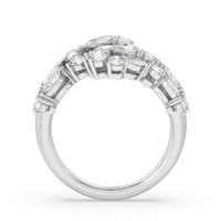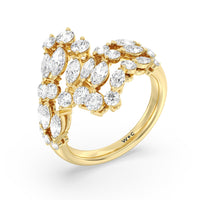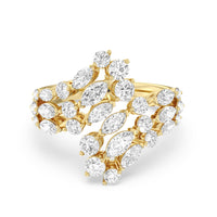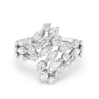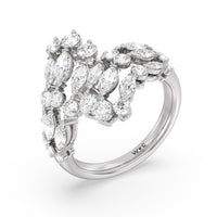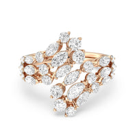 There's a unique and special feel to this show-stopping ring. Its elegant bypass shank is exquisitely dressed with a combination of marquise and round diamonds. It is definitely a lovely piece to consider when looking for a fashion ring that truly stands out.