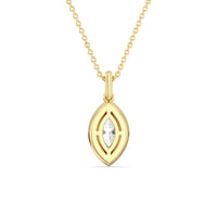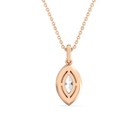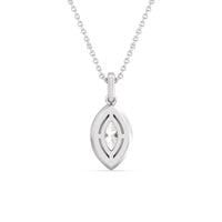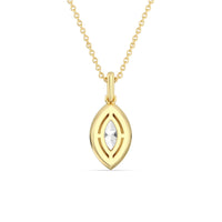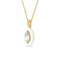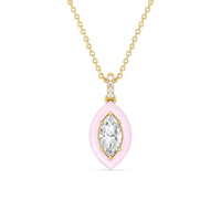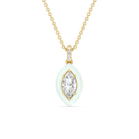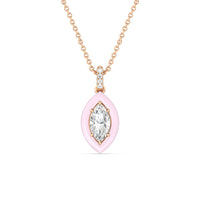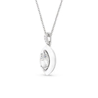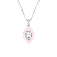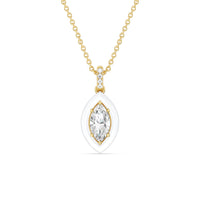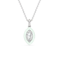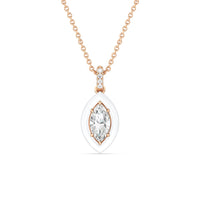 This necklace is designed with the perfect mix of tradition and trend. Its pendant features a delicate marquise diamond surrounded by a ceramic frame. Complementing the marquise diamond's brilliance are tiny round diamonds that trace the necklace's bail.