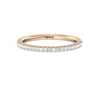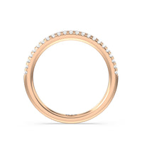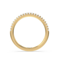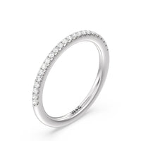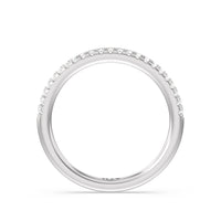 Shimmering pave diamonds cascade down this band to create a timeless beauty that will never go out of style. Designed to be paired with our marquise diamond hidden halo pave shank six prong solitaire engagement ring for a simple and sophisticated look.
