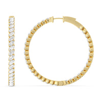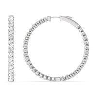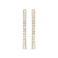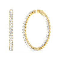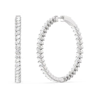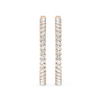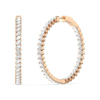 Skip the traditional hoops and go for this edgy yet elegant alternative. These large hinged hoop earrings come fully lined, in front and front-facing backside, with marquise-cut diamonds mounted in a diagonal manner. The earrings exude a look that's classy yet unique, and definitely chic.