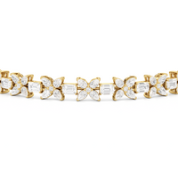 The Wildflower Bracelet is adorned in a series of marquise, round, and emerald-cut diamonds. The bracelet's design takes inspiration from a lush field filled with life, giving a nod to the diversity and wild beauty of nature. The delicacy of each floral exudes elegance and sophistication, adding an airy touch of brilliance that elevates any ensemble.