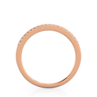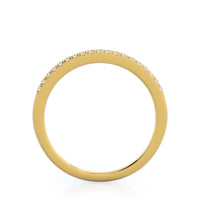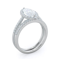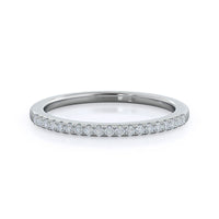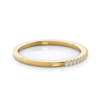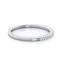 As the shank on your engagement ring lifts your center diamond up, this pave wedding band tucks into place underneath it. The result is a sparkling wedding ring stack that highlights that unique marquise diamond, but teams up to create plenty of sparkle all around it.