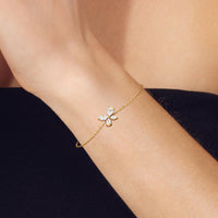 The Marsilea Bracelet is a delicate tribute to nature’s elegance, inspired by the graceful form of the Marsilea flower. A shimmering diamond-studded bloom is beautifully accented by a fine chain, symbolizing balance, growth, and harmony. Designed for effortless sophistication, this bracelet is secured with a sleek lobster lock for a comfortable and secure fit. Whether worn alone for a subtle sparkle or layered for added brilliance, the Marsilea Bloom Bracelet is a timeless expression of beauty and grace.