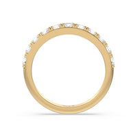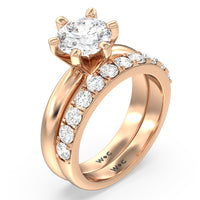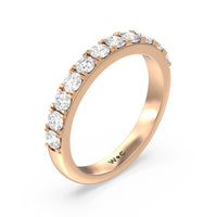 Shimmering pave diamonds cascade down this band to create a timeless beauty that will never go out of style. Designed to be paired with our maxi classic six prong solitaire diamond engagement ring for a simple and sophisticated look.