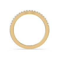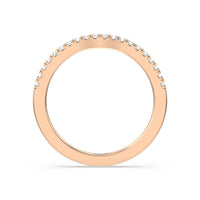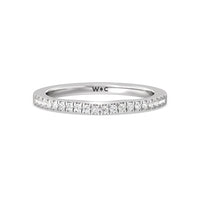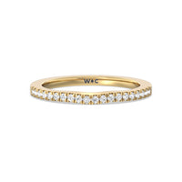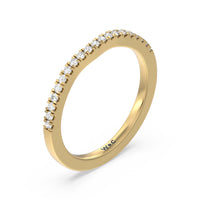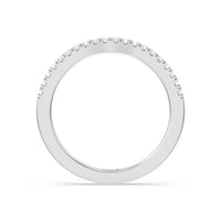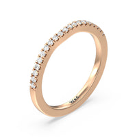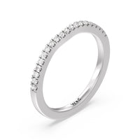 This curved diamond set wedding band is perfectly contoured to complement our maxi sleek cathedral solitaire engagement ring for a simple and sophisticated look.