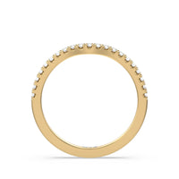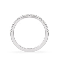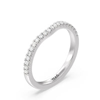 This curved diamond set wedding band is perfectly contoured to complement our maxi solitaire diamond engagement ring for a simple and sophisticated look.