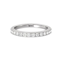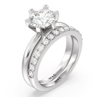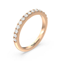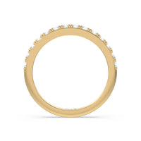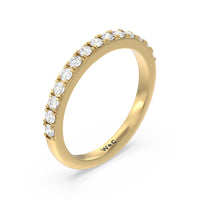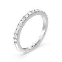 Shimmering pave diamonds cascade down this band to create a timeless beauty that will never go out of style. Designed to be paired with our medi classic six prong solitaire diamond engagement ring for a simple and sophisticated look.
