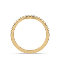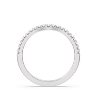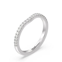 This curved diamond set wedding band is perfectly contoured to complement our medi solitaire diamond engagement ring for a simple and sophisticated look.