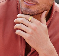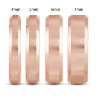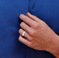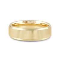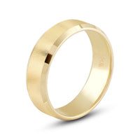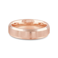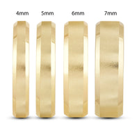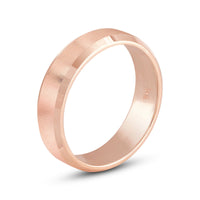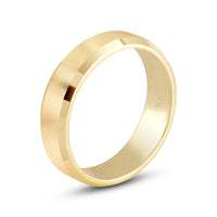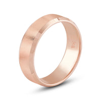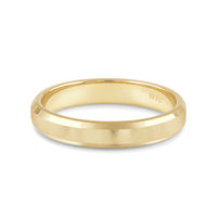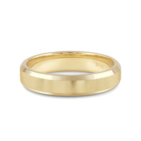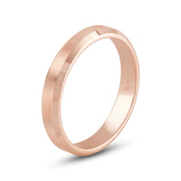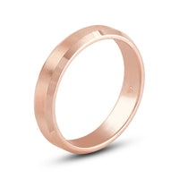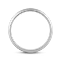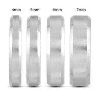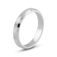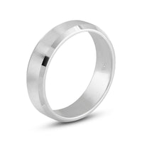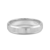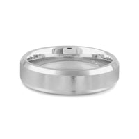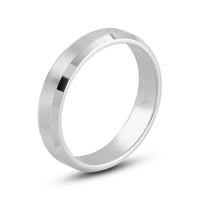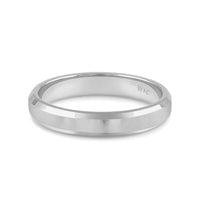 A stylish groom's choice. This edgy wedding band for men is crafted in cool 14K white gold and features a satin-finished center bordered by beveled edges in a polished finish. The 4mm band has a curved inner wall for a comfortable and effortless fit.