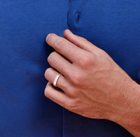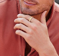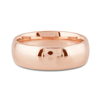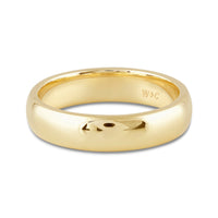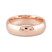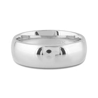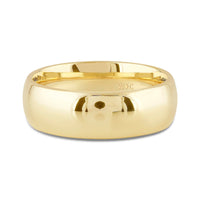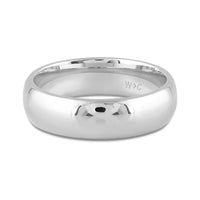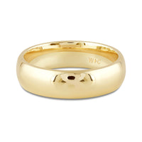The classic choice. This high-domed wedding band for men features a well-defined rounded shape on its outer surface. The inner wall of the ring is slightly curved to reduce unnecessary friction and pressure on the finger. Simple and comfortable, this is the ring he will never want to take off.