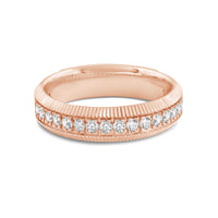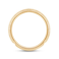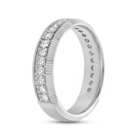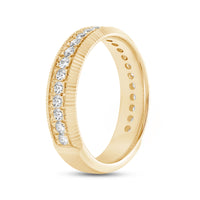 Go beyond the basics with this off-the-wall bauble. A series of diamonds run along the band's circumference, bordered by fluted detailing. The dimensional look of this ring elevates any outfit.
