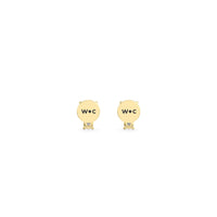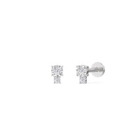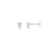 These diamond earrings feature a fluted bezel that plays wonderfully with light and shadow. They're secured by a flat disc backing, making them safe for sensitive skin and for wearing all day, every day. The smaller diamond makes for added brilliance.