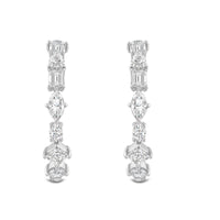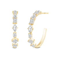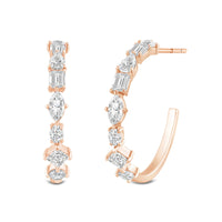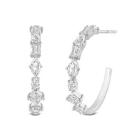 These earrings are ready to serve as an instant pick-me-up to any ensemble. The C-shaped hoops are fashioned in white gold and designed with a row of diamonds in mixed fancy cuts. Masterfully crafted in whimsical style, these earrings are sure to get compliments.