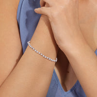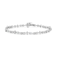 Add interest to your style with this diamond tennis bracelet with a lot of personality. The entire length of this white gold bracelet is traced with lab-created diamonds in various shapes and cuts. Fun yet elegant to wear, this bracelet will polish your outfit with a hint of whimsical elegance.