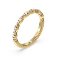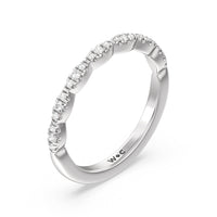 Shimmering pave diamonds cascade down this band to create a timeless beauty that will never go out of style. Designed to be paired with our modern east west hidden halo solitaire engagement ring for a simple and sophisticated look.