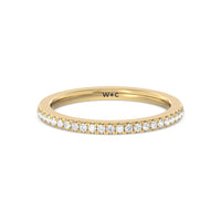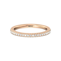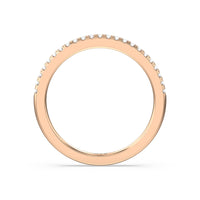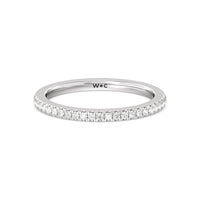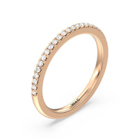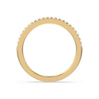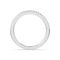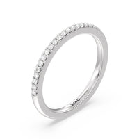 Shimmering pave diamonds cascade down this band to create a timeless beauty that will never go out of style. Designed to be paired with our modern fine line high hidden halo solitaire ring for a simple and sophisticated look.