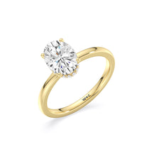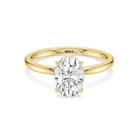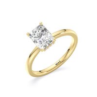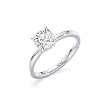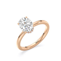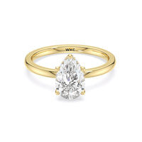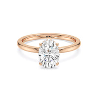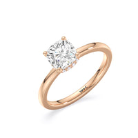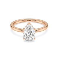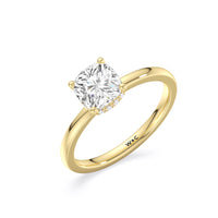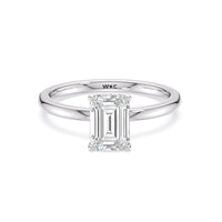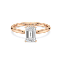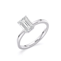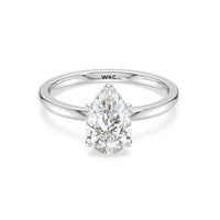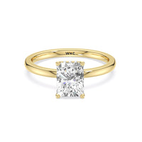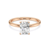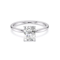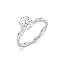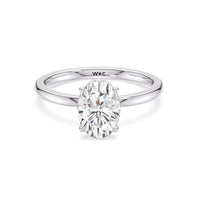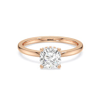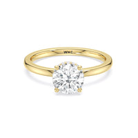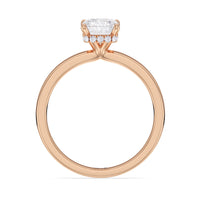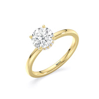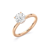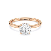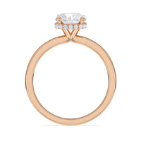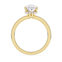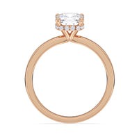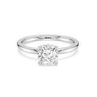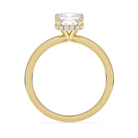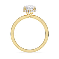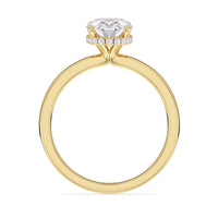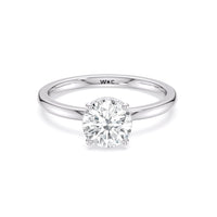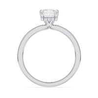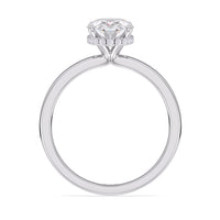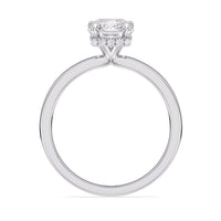 Modern in its simplicity, the clean, fluid lines of this classic solitaire engagement ring pair with a hidden halo sitting high on the head and signature claw details to create a truly luminous effect which sparkles from all angles.