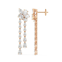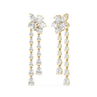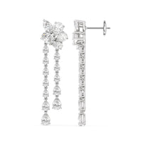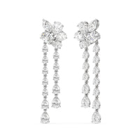 The Mosaic Chandelier Earrings are a masterpiece made to captivate the senses. This delicate pair of earrings features a radiant post formed by a cluster of pear and marquise cut diamonds. Twin linear drops detailed with pear-cut diamonds in tapering sizes suspend from the post, gently swaying and sparkling as you move.