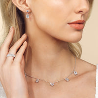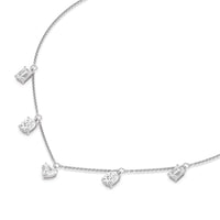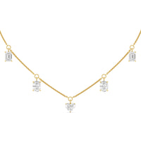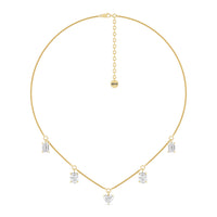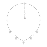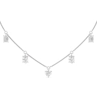 That luxurious yet understated look is easy to achieve with this diamond station necklace in your wardrobe. This beautiful piece features a barely-there chain adorned with five prong-set diamonds in different cuts. The diamonds are positioned evenly along the necklace's base, ready to catch light and deliver a subtle sparkle.