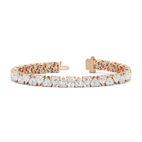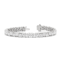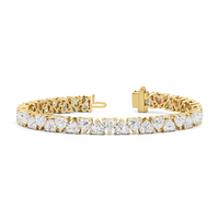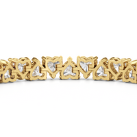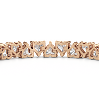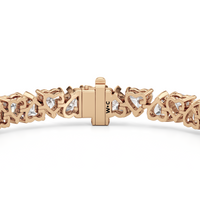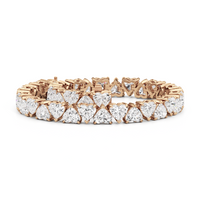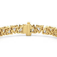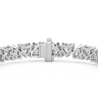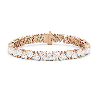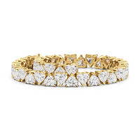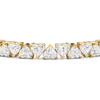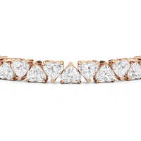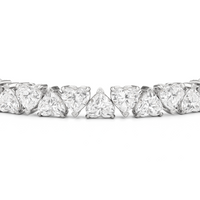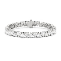 The eternal classic charts a new course with this north-south diamond tennis bracelet. Heart-shaped diamonds secured by v-prongs line up in alternating north-south settings, with the heart's pointed tip alternately pointing up and down. The shift creates a chic and modern appearance while maintaining an air of timelessness.