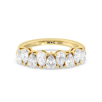 Think beyond the basics and opt for this half-eternity ring with a dazzling play on geometry. It features a polished band topped with an arching row of pear-shaped diamonds in alternating north-south patterns. Your fashion-loving significant other is sure to appreciate the bold style of this anniversary ring.
