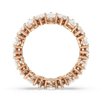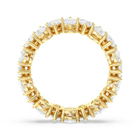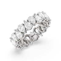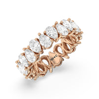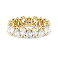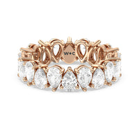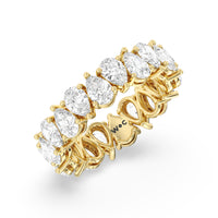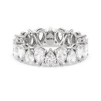 Geometric and unapologetically dramatic, this diamond eternity ring is a stunning choice for a bold declaration of affection. It features pear-shaped diamonds on three-prong settings arranged in alternating north and south pattern. This exceptional ring is perfect for celebrating and recognizing a harmonious partnership that will never end.