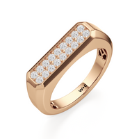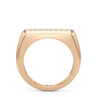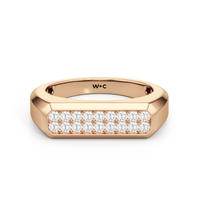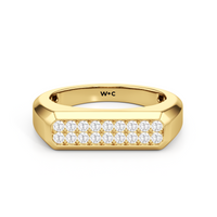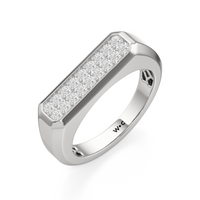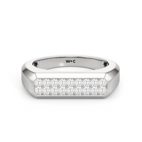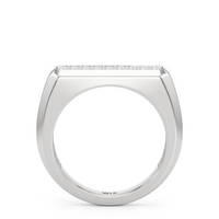 Refined yet powerful, this diamond ring for men puts the brilliance of diamonds front and center while maintaining an understated design. The angular band features a flat top with an octagonal frame encasing two rows of pavé-set diamonds.
