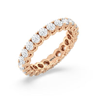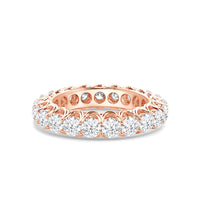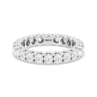 Express your unfaltering love for your one and only through this diamond eternity ring. The band features a series of U-shaped prongs elegantly securing the brilliant round diamonds. This ring undeniably makes a gorgeous symbol of forever.