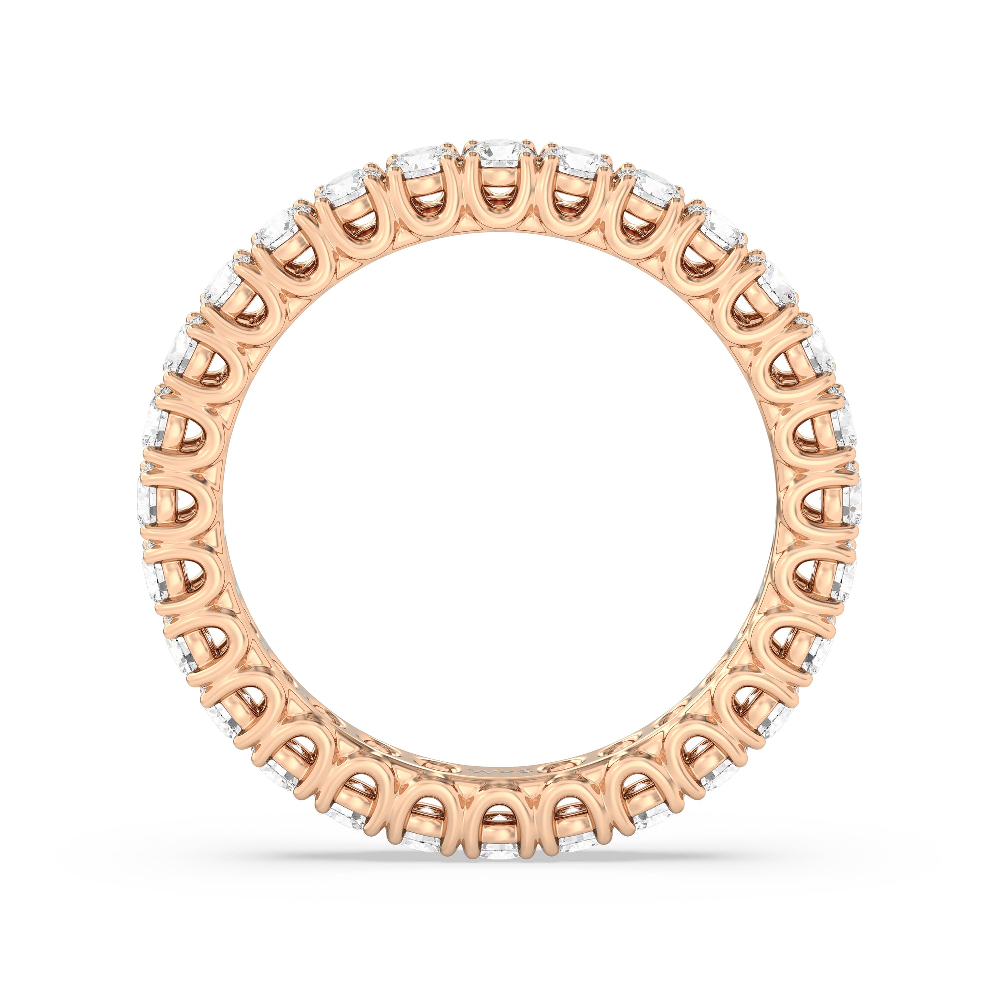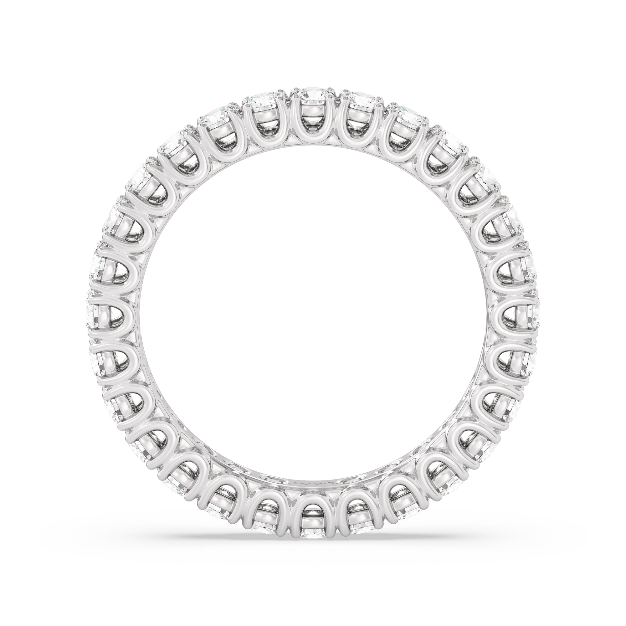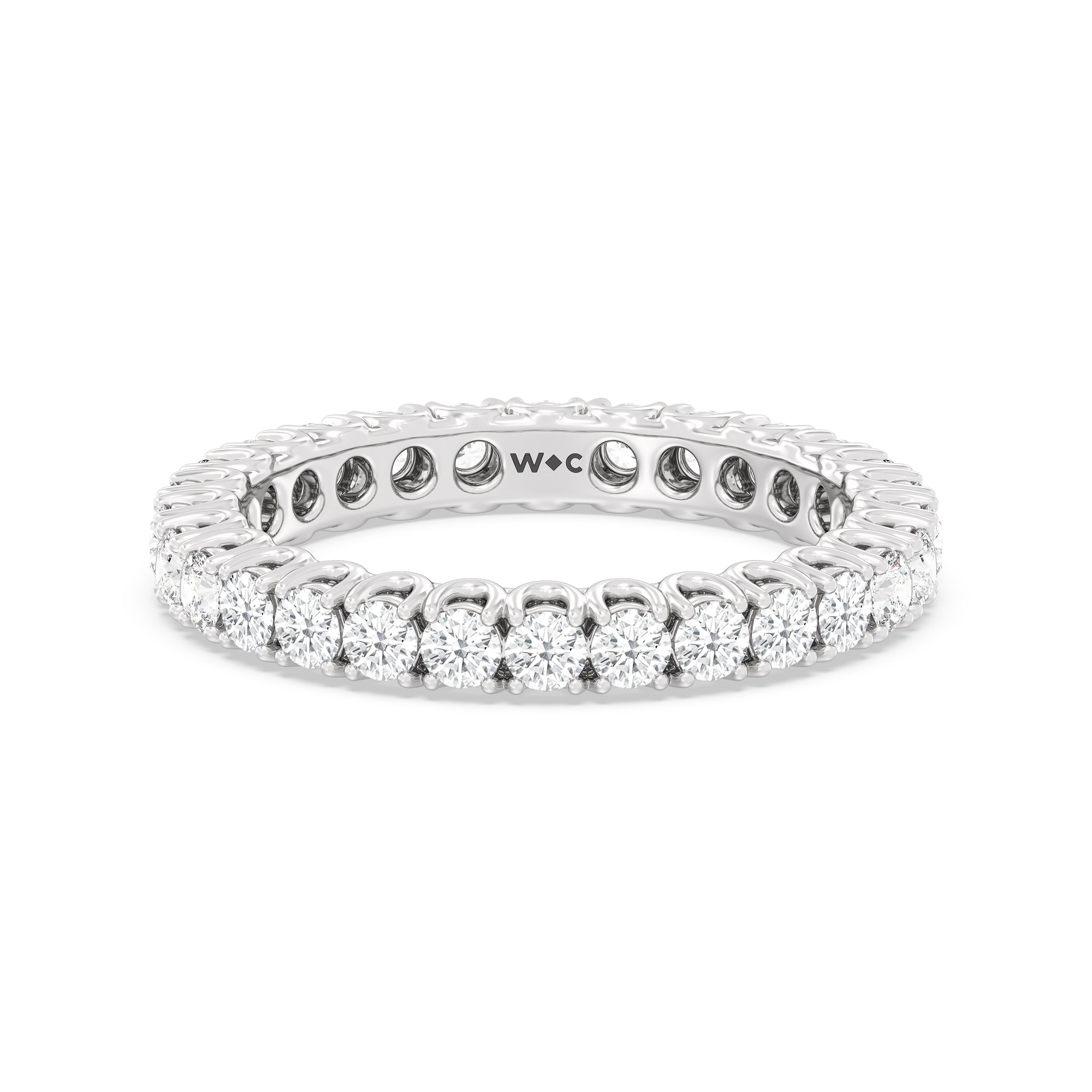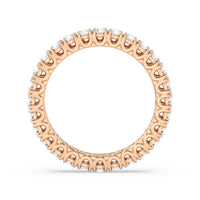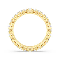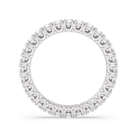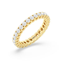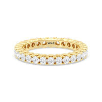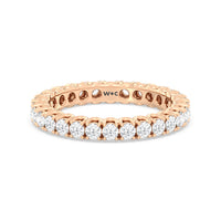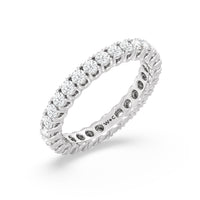 Express your unfaltering love for your one and only through this diamond eternity ring. The band features a series of U-shaped prongs elegantly securing the brilliant round diamonds. This ring undeniably makes a gorgeous symbol of forever.