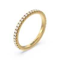 Shimmering pave diamonds cascade down this band to create a timeless beauty that will never go out of style. Designed to be paired with our orion petite french set diamond engagement ring for a simple and sophisticated look.