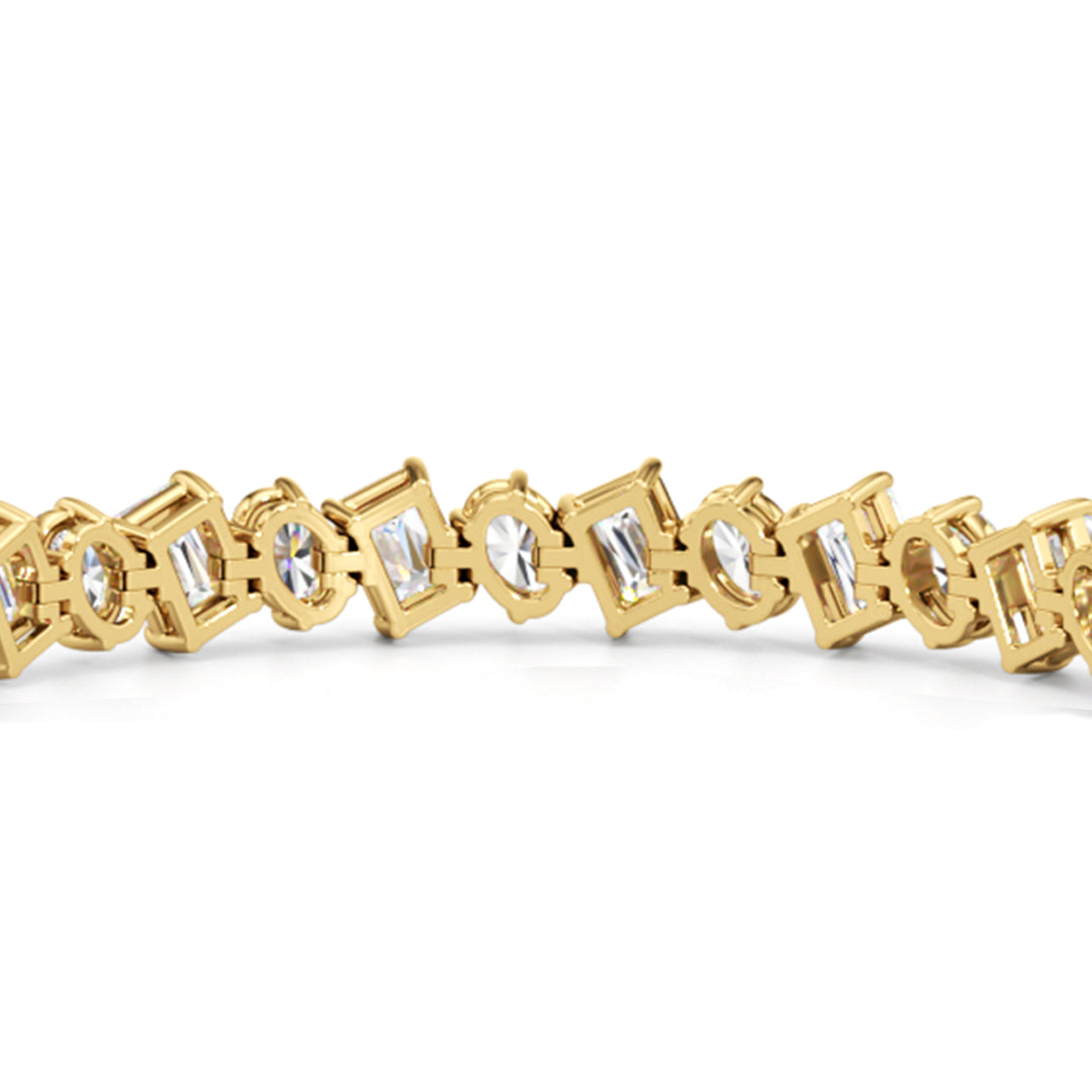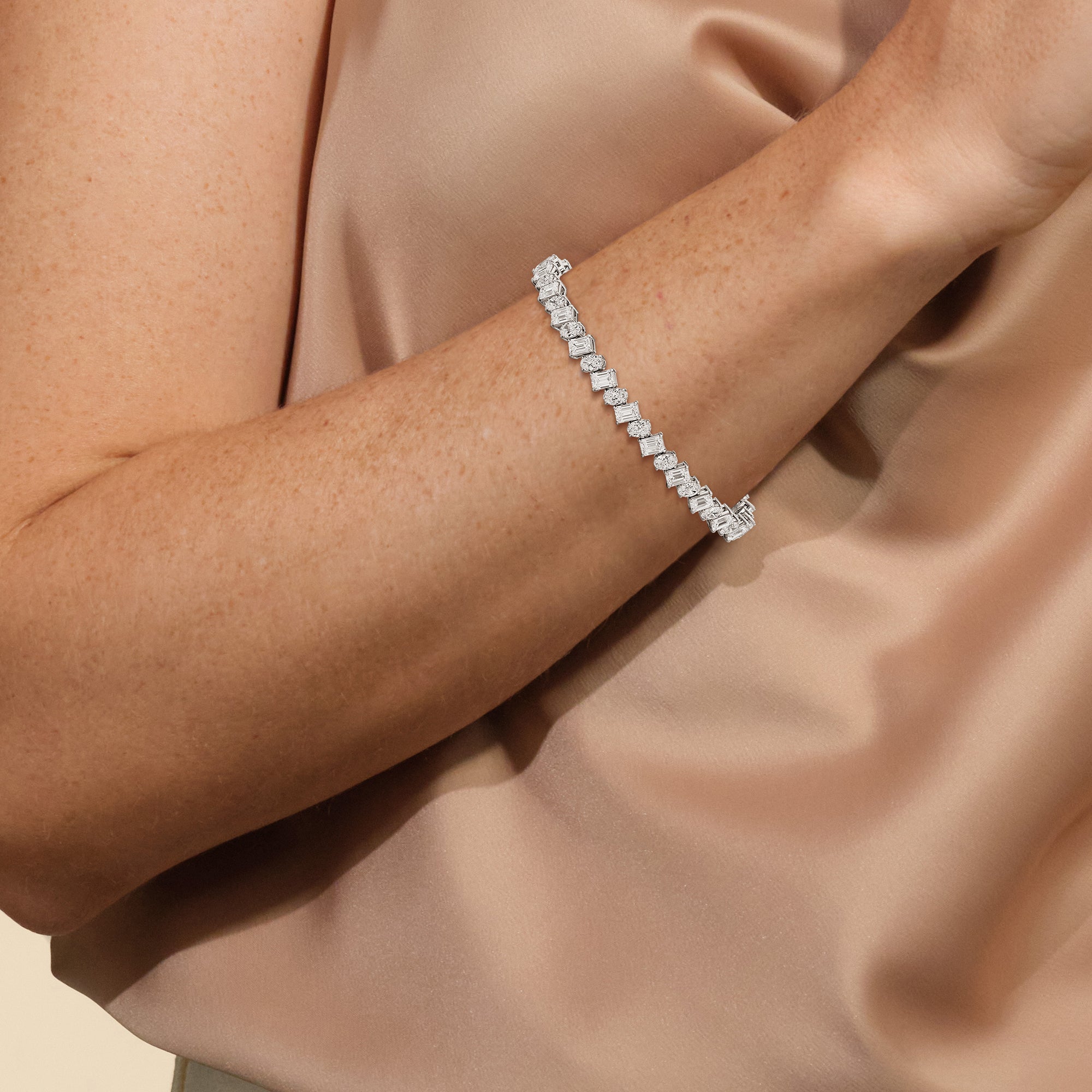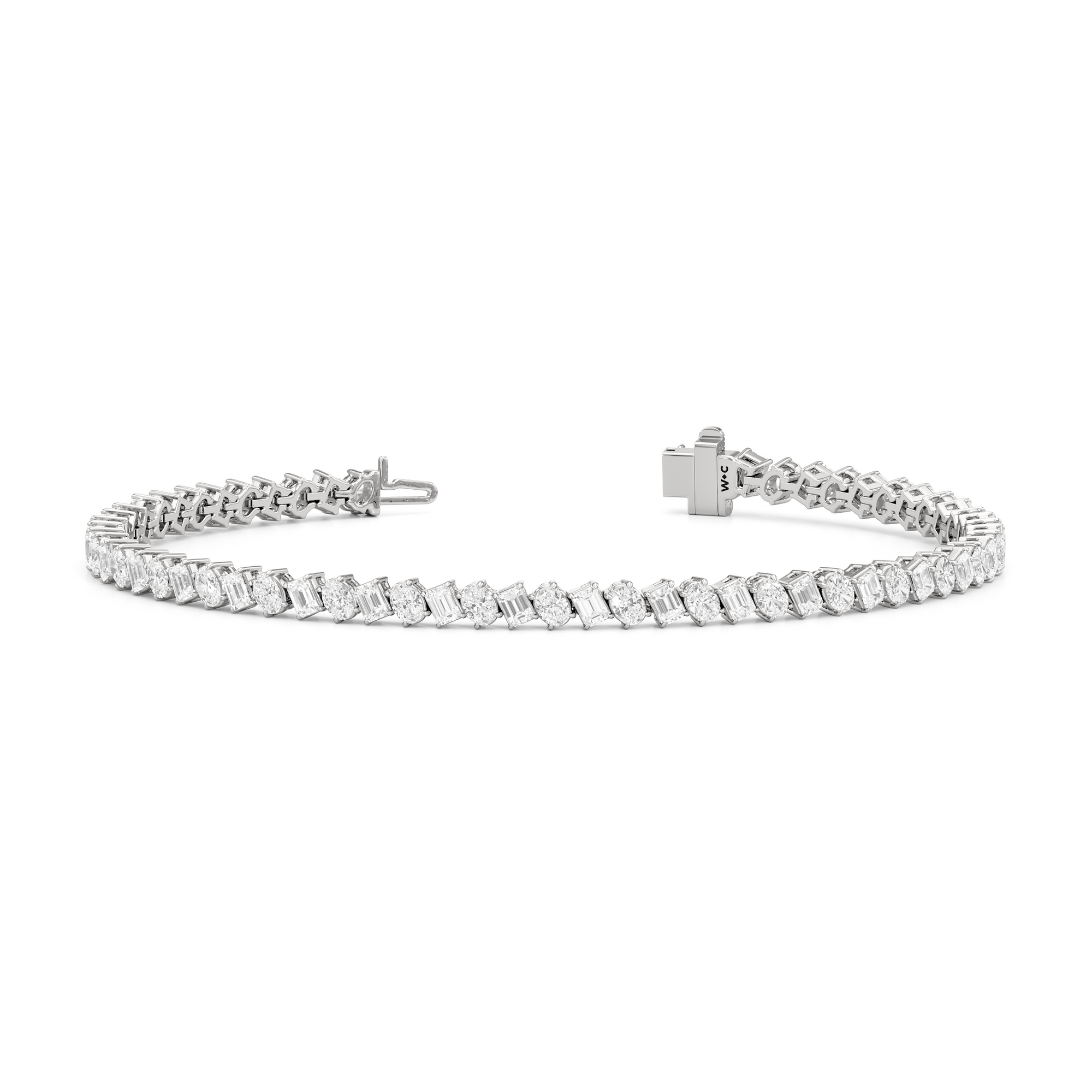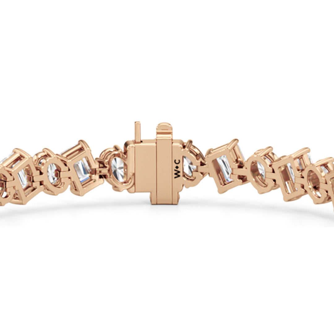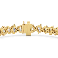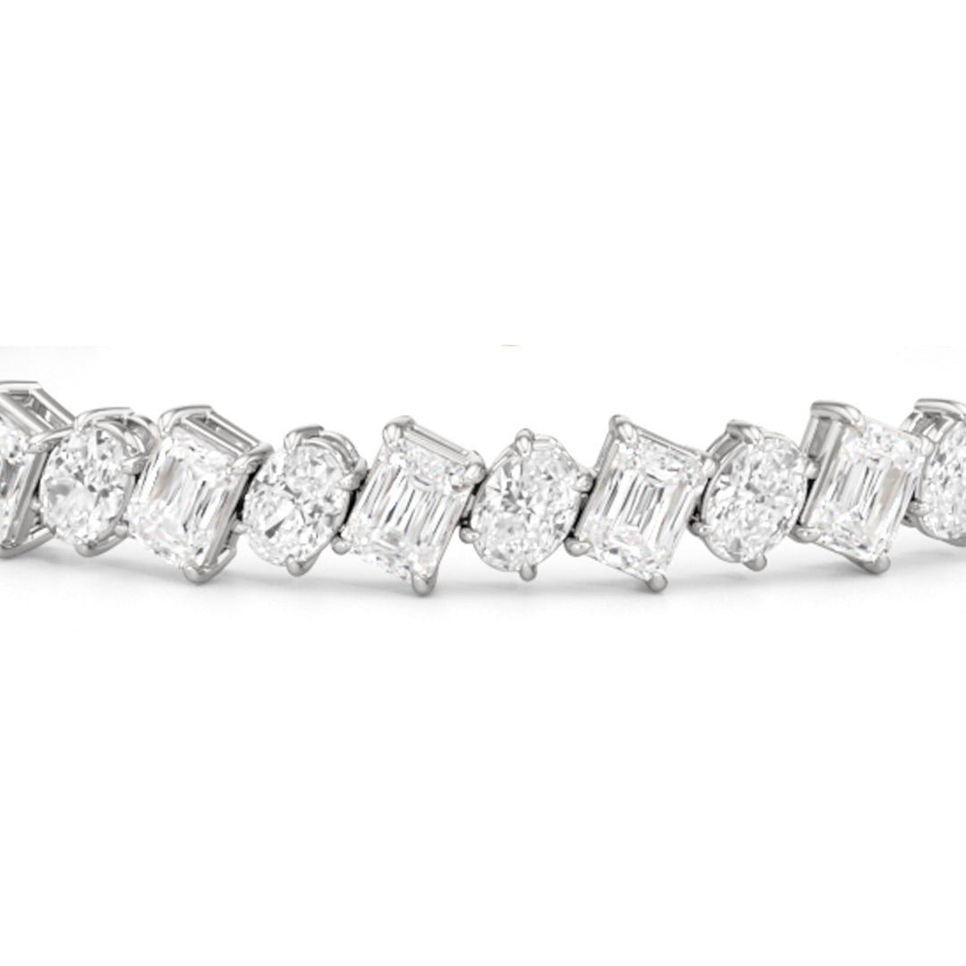 Unique yet classic, this tennis bracelet leaves a lasting impression. It features an alternating pattern of oval-cut and emerald-cut diamonds. Made to wear both day and night, this bracelet is guaranteed to add an air of sophistication to any ensemble.