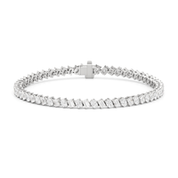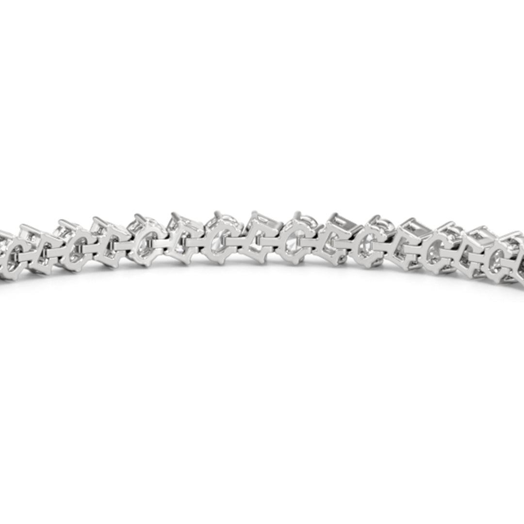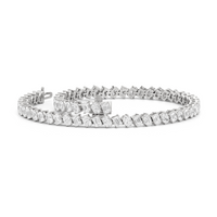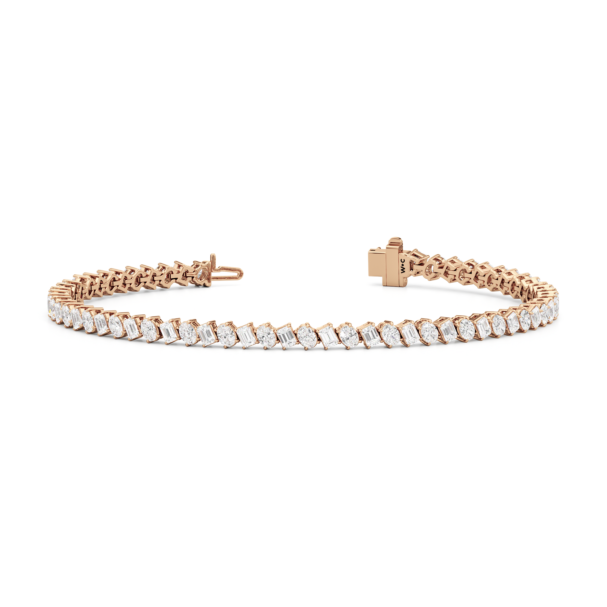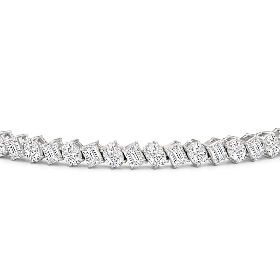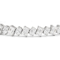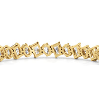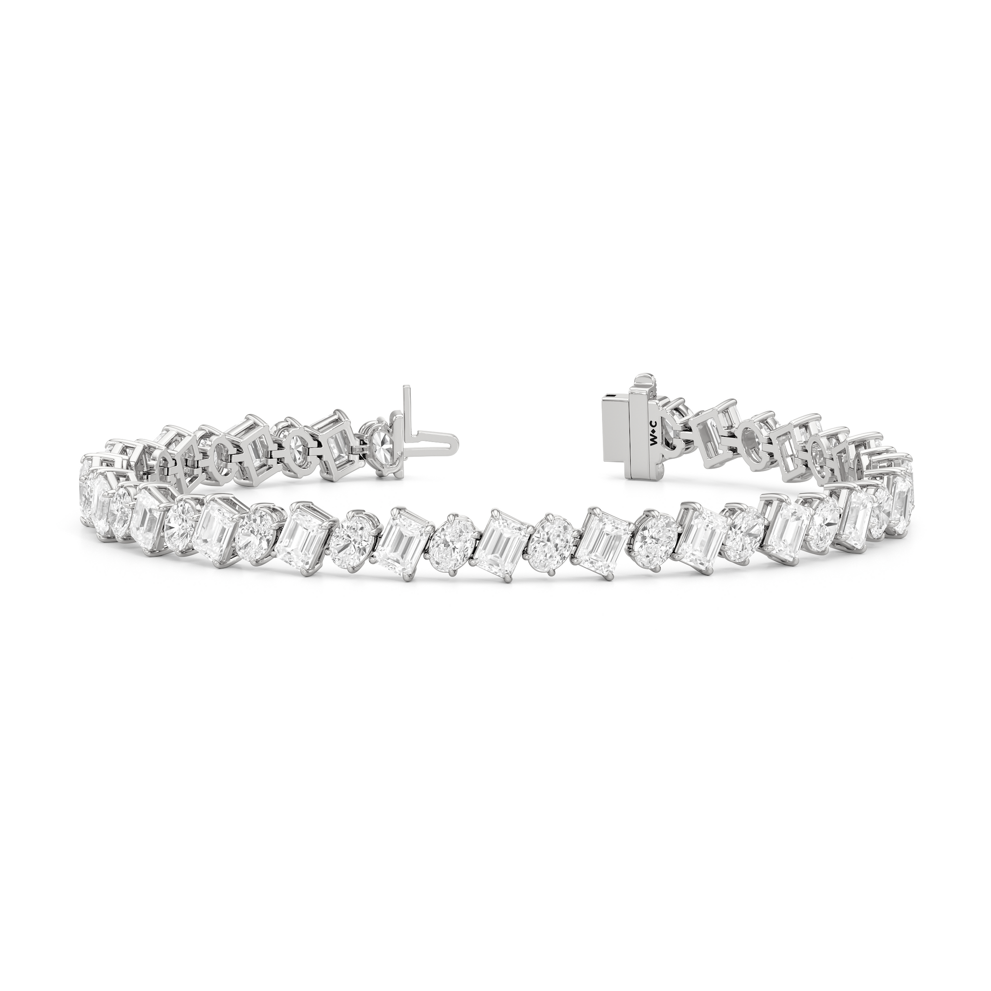 Unique yet classic, this tennis bracelet leaves a lasting impression. It features an alternating pattern of oval-cut and emerald-cut diamonds. Made to wear both day and night, this bracelet is guaranteed to add an air of sophistication to any ensemble.