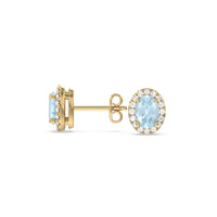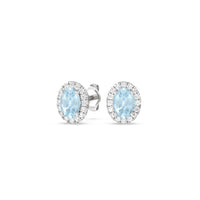 These are not your traditional stud earrings. The center stone is a vividly colored Oval Aquamarine set with a halo of lab-grown diamonds. These earrings display an elegant blend of vivid color and brilliant sparkle, perfect for when you want to Oval out your outfits with something stylish but not too trend-conscious.
