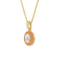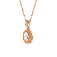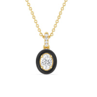 This oval necklace's graceful bounce and charm make it an effortless choice. The diamond's contrast against the plush bezel frame creates an eye-catching look that you won't want to leave the house without.