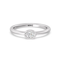 Here is an easy, everyday piece that's simple enough to match any outfit yet shiny enough to elevate a look. The smooth, polished band bears a single oval-cut diamond in a bezel setting. This minimalist diamond ring looks perfect when worn alone, but will also look fantastic when stacked together with your other favorites.